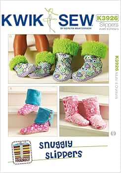 Amazon Com Kwik Sew K3926 Snuggly Slippers Sewing Pattern Size Adult And Children Xs S M L Xl Arts Crafts Sewing